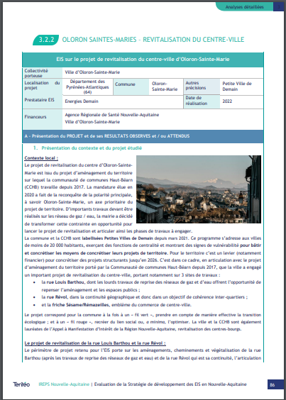 Notre cabinet Teritéo a été mandaté par l’IREPS Nouvelle-Aquitaine, en partenariat avec l’ARS Nouvelle-Aquitaine, afin de conduire l’évaluation de la stratégie de développement des évaluations d’impact sur la santé (EIS), mise en œuvre par le dispositif COMODEIS « COllectivités MObilisées pour le Développement des Evaluations d’Impact Santé ».