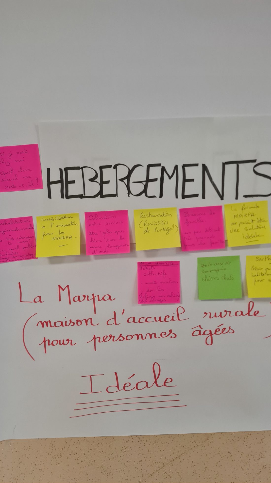 A la demande du maire de Crosmières, un atelier de concertation spécifique s’est tenu le 12 février 2025. Il a réuni une quinzaine de participants qui devaient réfléchir collectivement aux solutions à envisager pour bénéficier de services à domicile, les informer sur ce qui existe déjà et les hébergements existants. Lors de ce déplacement de terrain, une visite d’un lotissement accueillant principalement des personnes âgées a été proposé aux habitants. D’autres visites du « foncier disponible » ont également été réalisées.